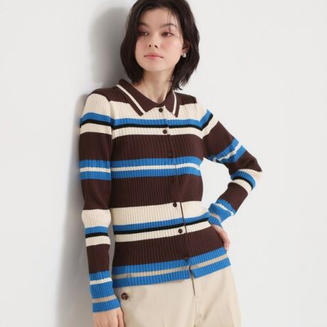 衿付きのマルチボーダーニット。