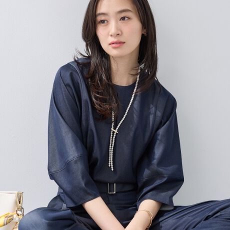 胸元にはタックデザインを入れ、顔周りに程よいアクセントをプラス。