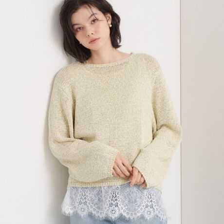 MIXカラーのテープヤーンで表情豊かに編み立てた、プレーンシルエットの春ニット。
