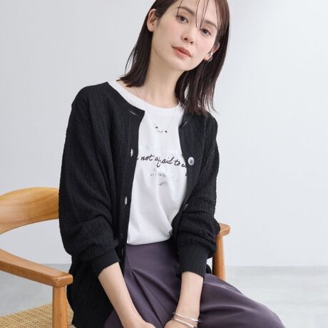 ボタンを前にすればカーディガンとして、後ろにすればプルオーバーとしても楽しめる、着こなしの幅が広がる一枚です。