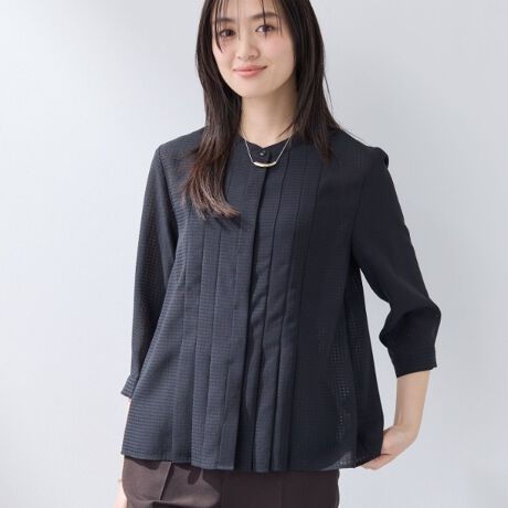 フロントに施された大胆なタックプリーツが印象的なブラウスです。