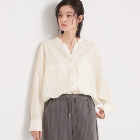 刻みネックが生むすっきりとしたネックラインが上品なシャツ。