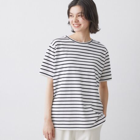 ベーシックで着回し力の高い、クルーネックカットソー。