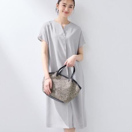 首元はスキッパーデザインですっきりと見せ、前中心の縦の深めなタックがスタイルアップ見えするワンピースとなっています。