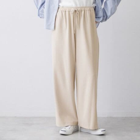 ウエストは総ゴム+ドローストリング仕様で、見た目はきれいめながらリラックスした穿き心地を実現。