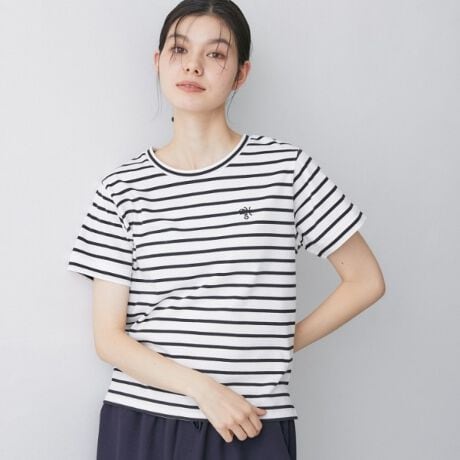 胸元のワンポイント刺繍がさりげないアクセントになり、シンプルながらも品よく仕上がっています。