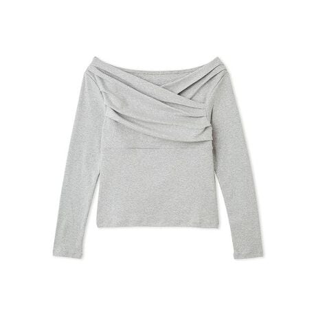 カシュクールデザインがデコルテを美しく見せ、程よくコンパクトなシルエットと美しいドレープが、カットソー素材とは思えない上品さを演出。