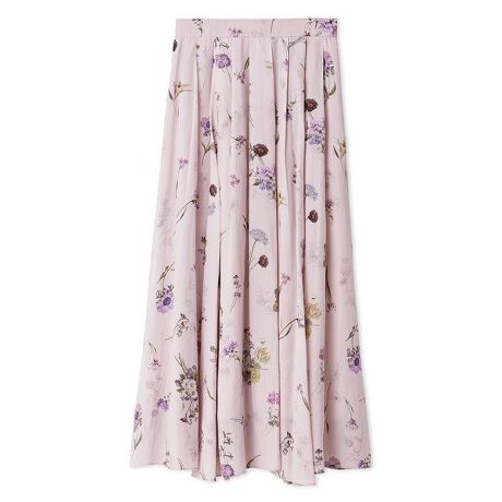<b>【トレンド感のあるボタニカルプリントが大人エレガントな艶めきフレアスカート】</b>