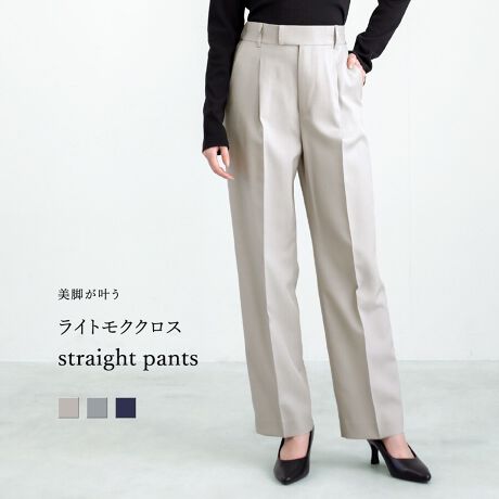 ライトモククロス ワイドパンツ ストレートパンツ センタープレス 美脚パンツ きれいめパンツ オフィスパンツ セットアップ対応 洗えるパンツ 通勤コーデ
