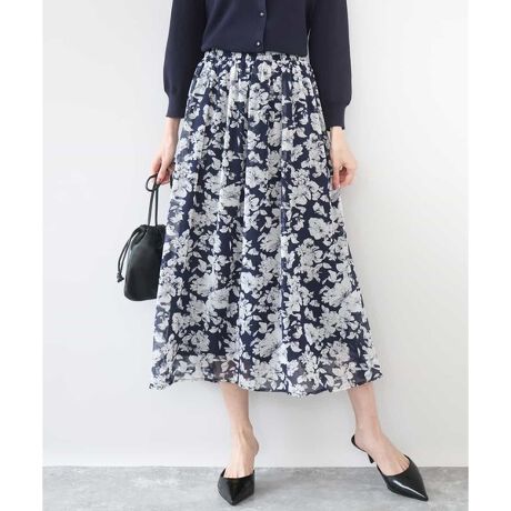 ふわっと軽やかなシルエットはトップスを選びません。大人っぽく着こなせる花柄は上品で落ち着いた雰囲気に。同素材のブラウスとセットアップでワンピース見えの着こなしも楽しめます。