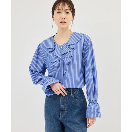 ・ラッフルデザインが立体的かつ軽やかに仕上がる薄手のシャツ素材を使用。