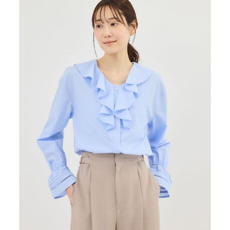 ・ジャケットのインナーとして合わせれば、ラッフル襟で華やかさをプラス。