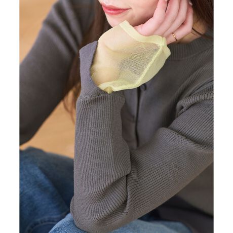 ・袖口にレイヤードデザインを施した、シンプルながらも着映えるカーディガン