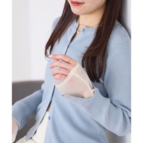 ・袖口にレイヤードデザインを施した、シンプルながらも着映えるカーディガン