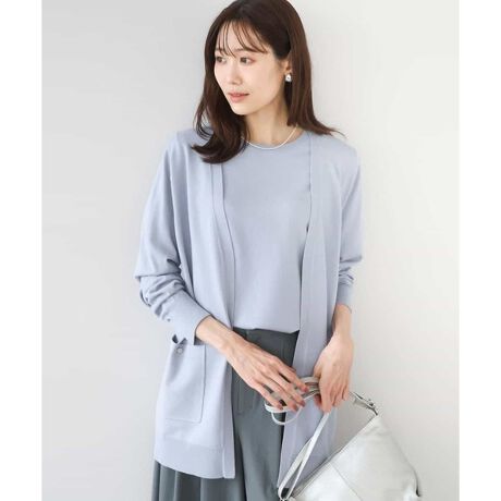ミドル丈の着流しカーディガンとクルーネックの半袖プルオーバーのセット。カーディガンのポケットにメタル釦をあしらい、ジャケットライクなデザインにアップデート。インナーは単品使いもしやすい程よいコンパクトなサイズ感に。