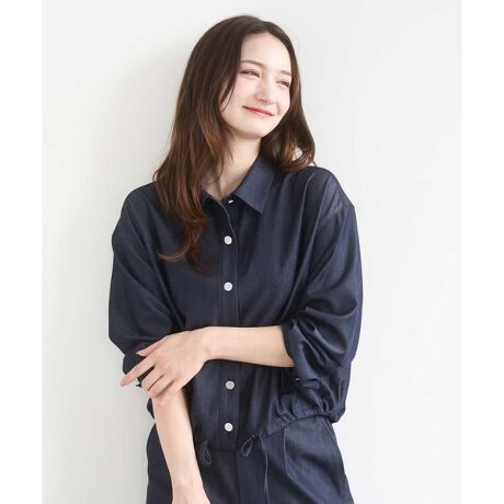 クロップド丈が着こなしやすいデニムライクシャツブラウス