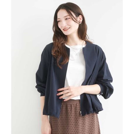 すっきりとした衿ぐりデザインが女性らしい印象のブルゾン。軽やかな着心地で季節の変わり目にぴったりな一枚です。裾はドローコード仕様で、調整可能。