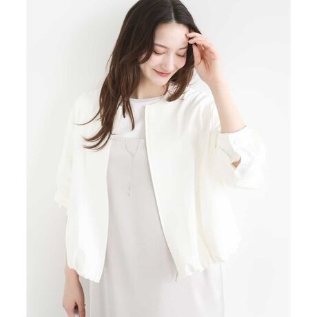 すっきりとした衿ぐりデザインが女性らしい印象のブルゾン。軽やかな着心地で季節の変わり目にぴったりな一枚です。裾はドローコード仕様で、調整可能。