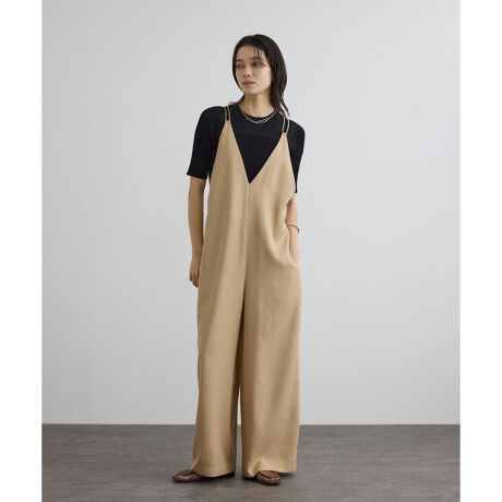 シンプルながら共紐を2本使いした華奢なディテールがアクセントのサロペット。