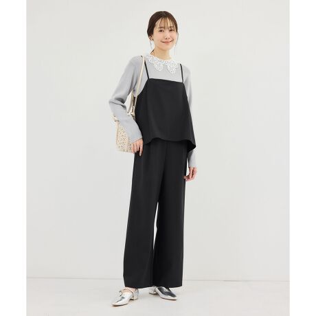 ・ワイドシルエットのパンツ部分が縦ラインを強調し、スタイルアップ効果も期待。