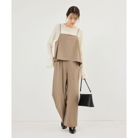 ・程よい落ち感とハリ感を備え、きれいめオールインワンとして上品な印象を演出。