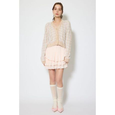 【軽やかに広がるプリーツミニスカートがriendaから登場】■ポイント繊細な消しプリーツが美しく、軽やかでボリューミーなミニスカートが完成しました。裾にいくにつれてボリューミーなシルエットは足を視覚的に細く見せてくれる効果や様々なトップスとの相性が抜群です。ウエスト後ろにはゴムギャザーを施しストレスフリーなフィット感に拘りました。■ディテール一見ボリューミーに見えるスカートですが、軽やかなシフォン生地で作成することで見た目よりも軽い着心地と、ティアードデザインによる重なりとイレヘムにより安心感のある着用感になっています。■スタイリングコンパクトなトップス、タイトなニットトップスとも◎スウェットでカジュアルMIXコーデもおすすめです■生地透け感:若干あり裏 地:あり伸縮性:なし光沢感:なし厚 さ:薄手■商品のお気に入り登録お気に入りアイテムの再入荷・在庫1点などの通知を受け取ることができます。[注意事項]※画像の商品はサンプルです。実際の商品と仕様、加工が若干異なる場合があります。※画像の商品は光の照射や角度、お使いのモニター環境により、実物と色味が異なる場合がございます。※着用、お取り扱いの際は、アテンションタグをご確認ください。
