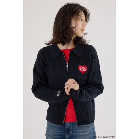 ■ポイントカラフルで個性豊かなケアベアコラボの登場です。フロントにはキャッチーなハートロゴのワンポイント、袖にはRODEOのロゴでシンプルに。バックは手を繋いだケアベアたちとモチーフ、メッセージが散りばめられた全刺繍が豪華なカーディガンです。■ディテールフロントと袖のケーブル編みのディテールと、襟付きデザインがトレンド感満載。小さすぎないサイズ感が使いやすく、ダブルジップなのでジップの開き方で多様なスタイリングが可能。■スタイリングミニスカートと合わせてレディーライクに。カーゴパンツやワイドパンツなどのボトムスにボリュームを持たせて甘辛ミックスにしてもかわいいです。■生地※手洗い対応商品※ONE&ONLY札付きポリエステルストレッチ糸の柔らかい編地に刺繍を施しているため、刺繍部分に広がりが出るなど、個体差が生じる場合がございます。これは生産工程上避けられないものであり、不良品ではございませんので、あらかじめご了承ください。素材の特性上、ピリングなどが発生した場合は、はさみなどできれいにカットしてください。柔らかいニット商品ですので、ハンガー掛けの際に全体的にサイズが伸びます。こまめにハンガーから外すなどご注意下さい。■透け感:なし■裏地:なし■伸縮性:あり■光沢感:なし[注意事項]※画像の商品はサンプルです。実際の商品と仕様、加工が若干異なる場合があります。※画像の商品は光の照射や角度、お使いのモニター環境により、実物と色味が異なる場合がございます。※着用、お取り扱いの際は、アテンションタグをご確認ください。
