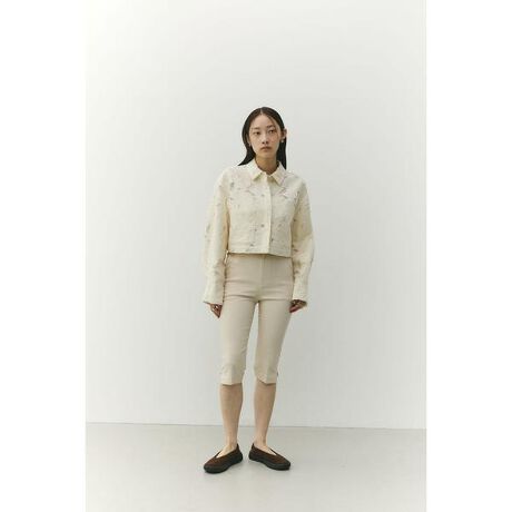 モデル身長166cm(Mサイズ着用)ハイストレッチ生地でストレスフリーに着用いただけるカプリパンツ。ウエストベルトはゴム仕様でそれぞれの身体にフィットしてくれる一枚。ジャケットやシャツ合わせのスタイリングがおすすめです。透け感ややあり(IVO)、ストレッチあり。【お手入れ方法】ドライクリーニング