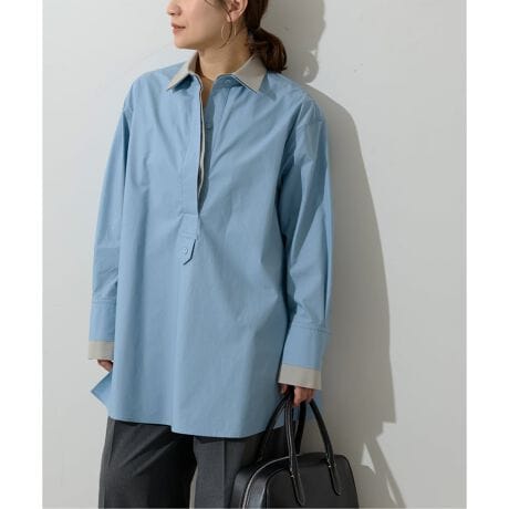 シャツONシャツのスタイリングを1枚で楽しめるデザイン。襟は付け外し可能に。インしやすい深めのスリットや、スキッパー仕様でメンズライクに仕上げました。アウトにして1枚でトレンドのレギンスと合わせても好相性です。