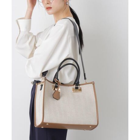 キャンバス地と合成皮革を組み合わせた、実用性の高いトートバッグ。オンスタイルにはもちろん、きちんと感を出したいお出かけや、カジュアルスタイルにも活躍する一品です。