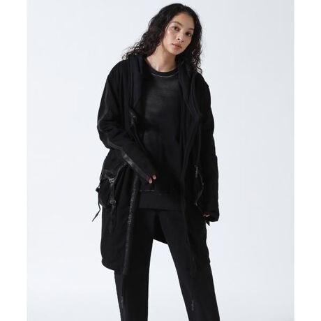 ブランドらしいエッジの効いたデザインと、唯一無二の存在感を放つフード付きロングカーディガン。