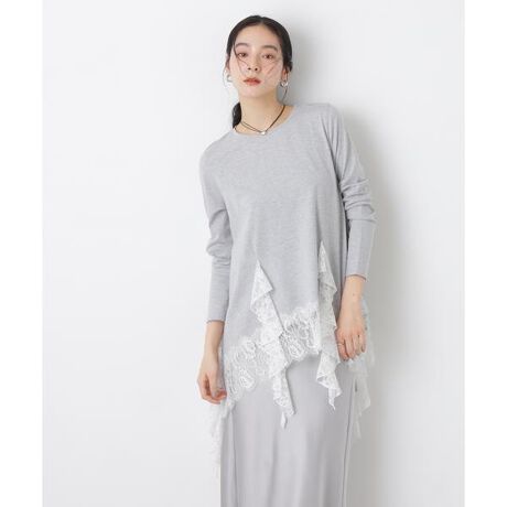 ・裾にあしらったレースが目を引くデザインカットソー