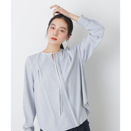 ・衿元のリボンディティールが印象的なオンブラウス