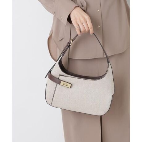 キャンバス地と合皮を組み合わせた、上品でカジュアルな印象のワンハンドルバッグ。柔らかな曲線フォルムと、肩にかけやすい程よい太さのハンドルが特徴で、オンスタイルはもちろんセレモニーシーンやデイリーにも幅広く活躍する万能アイテムです。