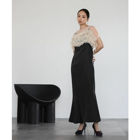 チュールのフリルトップスがセットになったロマンティックなパーティードレス。