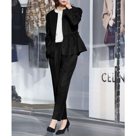 ツイードペプラムノーカラージャケット テーパードパンツ セットアップ スーツ フォーマル セレモニー