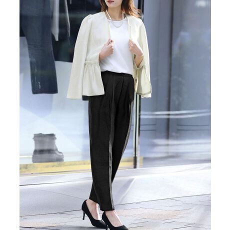 ツイードペプラムノーカラージャケット テーパードパンツ セットアップ スーツ フォーマル セレモニー