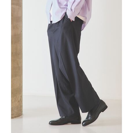ゆるやかな落ち感が美しいワイドストレートスラックス。