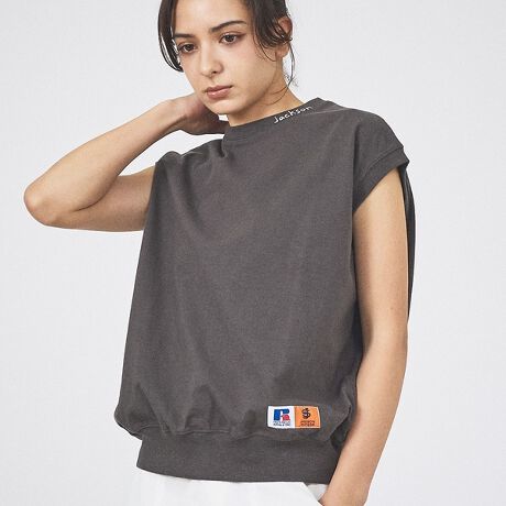 ヘビーウェイトでスラブ感のあるタフな素材を身生地に使用した、夏に重宝するノースリーブのプルオーバー。