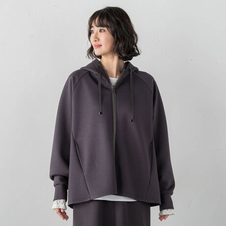 シルエットをテント型にフレア展開しており、裾の切り替えをなくしてキレイ目デザインにしています。