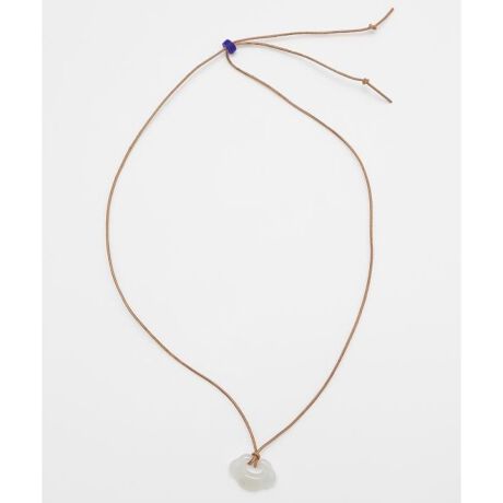 翡翠は古来「魂を癒す石」として、シルクロードを旅する人々に護符として携えられてきました。合皮と組み合わせたロングネックレスは、ナチュラルかつモダンな祈りのスタイルに。