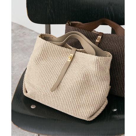 上品な風合いが魅力のラフィア調シートを使用したトートバッグ。