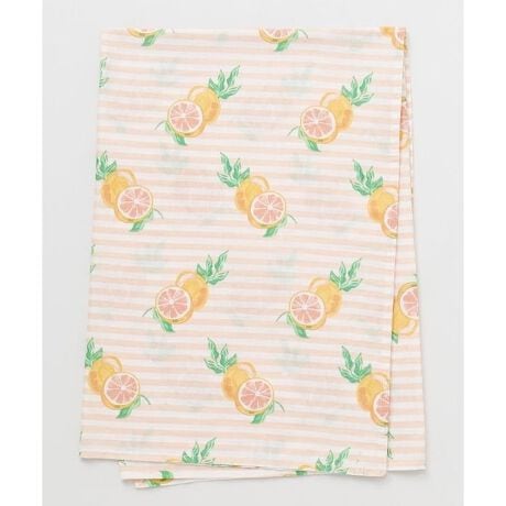 [型番:IRAP6105-2026]やわらかなコットン素材にフルーツ柄をのせたテーブルクロス。広げるだけで食卓がぱっと華やぎ、毎日の食事がより楽しくなる。おうち時間の気分転換にもおすすめです。