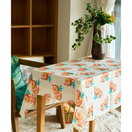 やわらかなコットン素材にフルーツ柄をのせたテーブルクロス。広げるだけで食卓がぱっと華やぎ、毎日の食事がより楽しくなる。おうち時間の気分転換にもおすすめです。