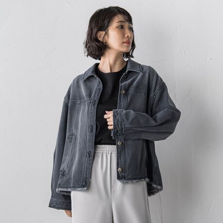 ほどよい落ち感と軽さがあり、デニムでも女性らしく着られる一枚です。