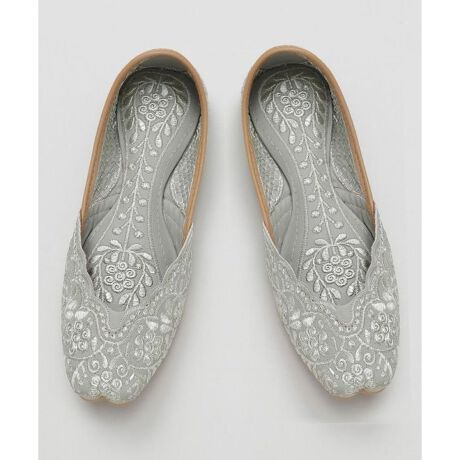 [型番:IRJP6104-2026]植物モチーフの刺しゅうがエレガントに映える、ジュッティタイプのフラットシューズ。インドの伝統と華やかさを取り入れつつ、歩きやすさにもこだわった一足。