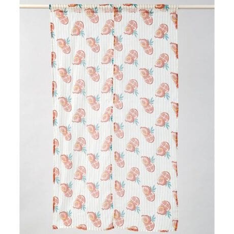 エキゾチックな色彩とフルーツ柄が目を惹くインド綿のノレン。陽気な色彩と遊び心あるデザインが空間を明るく彩り、吊るすだけでお部屋に個性をプラスしてくれる。