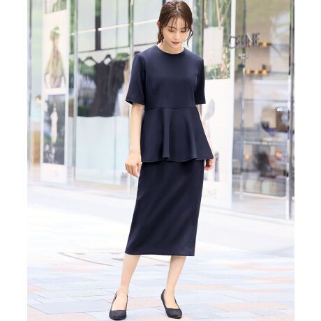 ペプラムブラウス タイトスカート セットアップ スーツ【洗える】