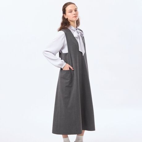 立体的なAラインシルエットがアイコニックなジャンパースカート。脇に縫い目がないことで裾のフレアが美しく広がるシルエットに仕立てております。