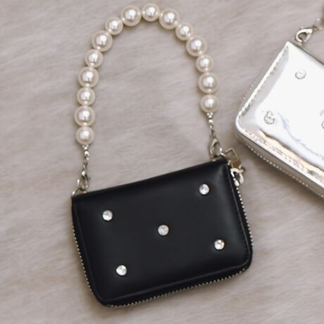 VERYSTORE別注の大人可愛いミニウォレット。パールハンドルとビジューのきらめきが目を引く華やかなデザインです?